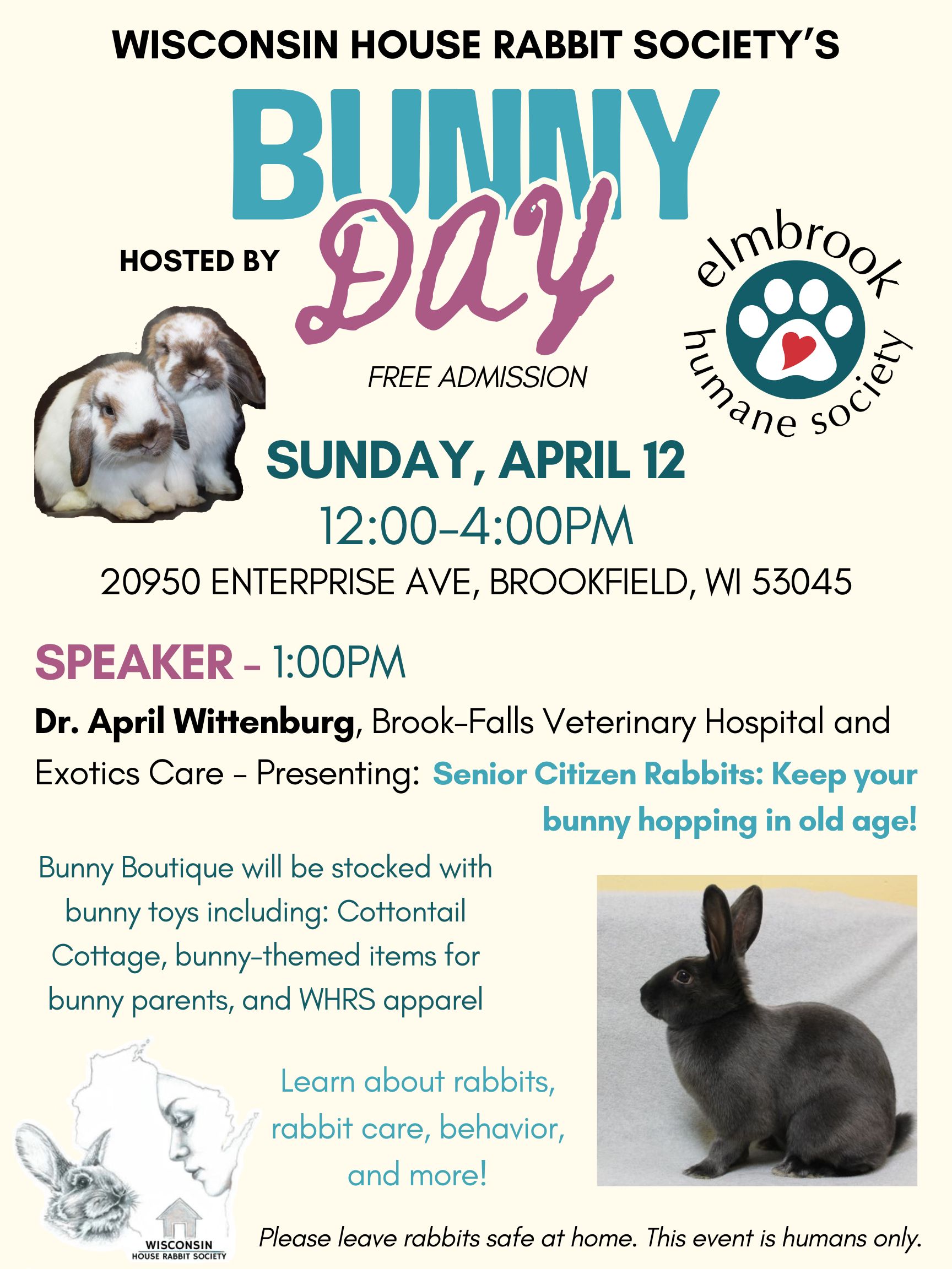 The Wisconsin House Rabbit Society is an all-volunteer, nonprofit organization dedicated to rescuing abandoned rabbits, finding them permanent, loving homes, and to educating the public about the care and behavior of rabbits.